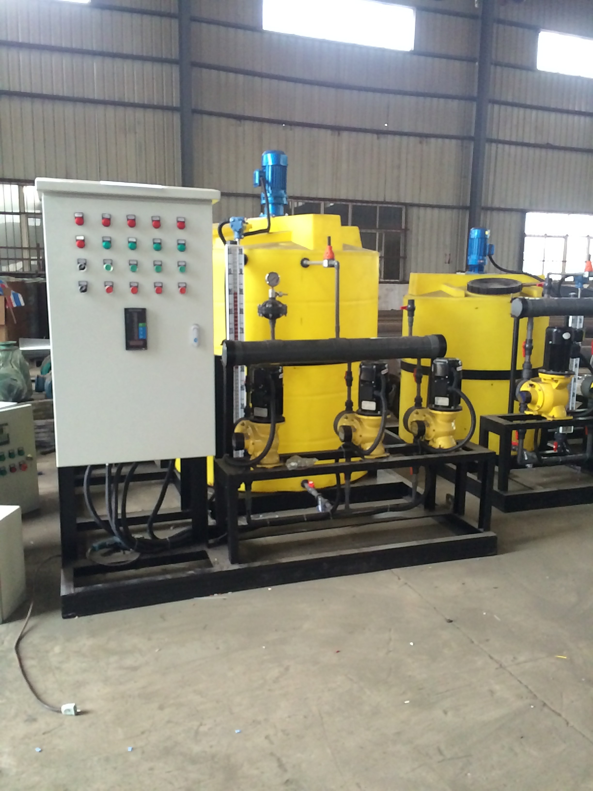 制造廠完成設(shè)備購置、制造、組裝、調(diào)試、試運(yùn)行,用戶只需將智能型全自動加藥裝置安放在加藥間后,將計(jì)量泵出口與加藥管路、計(jì)量箱進(jìn)出口與進(jìn)水管等連接好,并將控制柜電源和檢測儀表信號送到控制柜就可以啟動、投入運(yùn)行。這樣可以大大減少現(xiàn)場施工工作量,避免了中間環(huán)節(jié)繁多引出的差錯(cuò),有效地保證工期和工程質(zhì)量,減少用戶的麻煩和損失。
